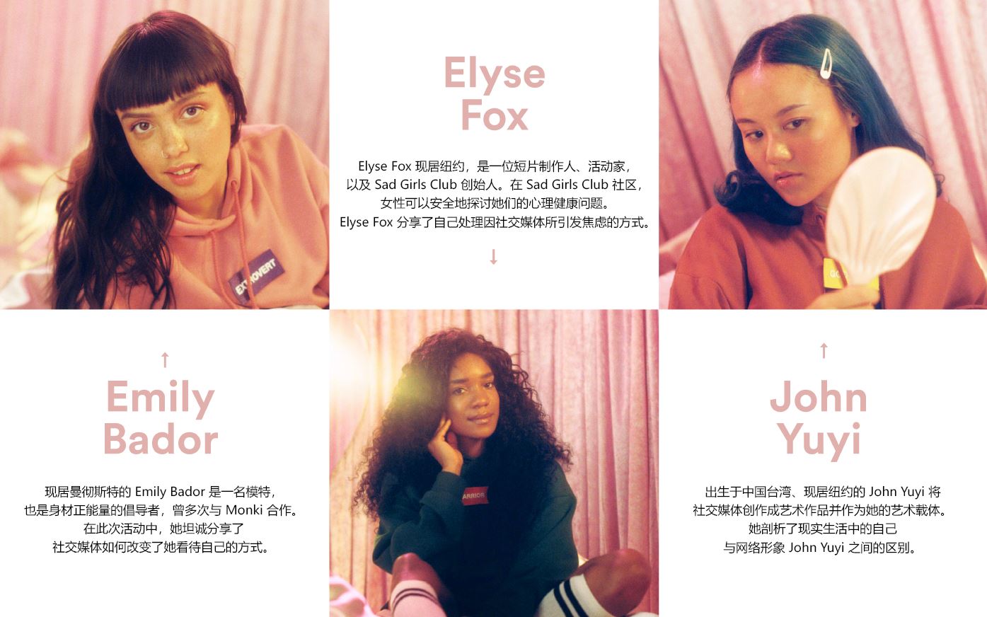 Monki 品牌总监Jennie Dahlin Hansson 表示:“在Monki,激励年轻人是我们一切工作的核心。能够积极参与到心理健康探讨,我感到万分荣幸。这项活动仅仅是我们为倡导心理和生理健康迈出的第一步。”